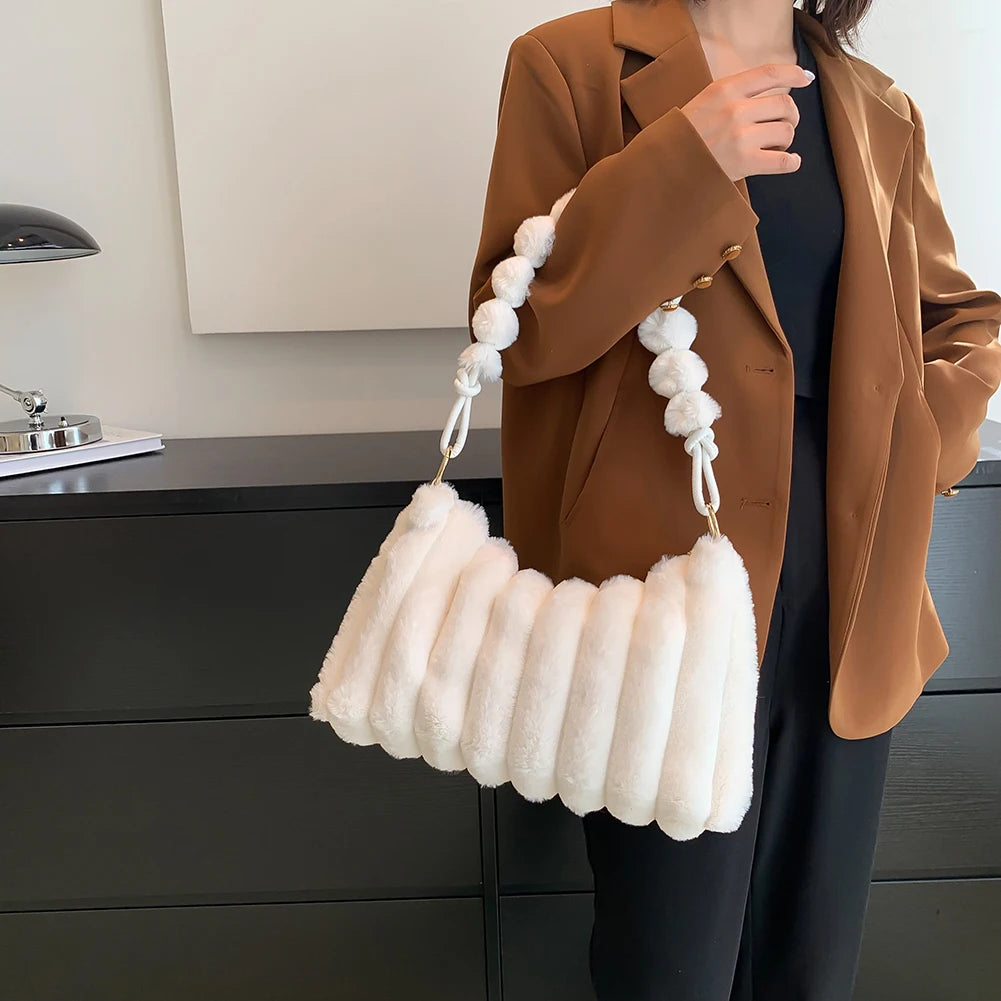 Soft Fluffy Underarm Bag for Girls Winter Traveling