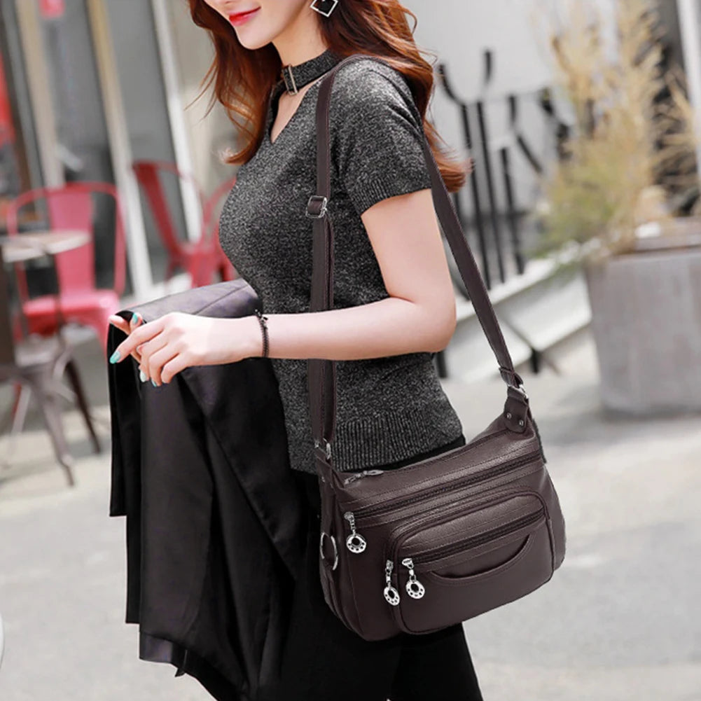 Soft Leather Crossbody Sling Bag Multi-Layer Pocket