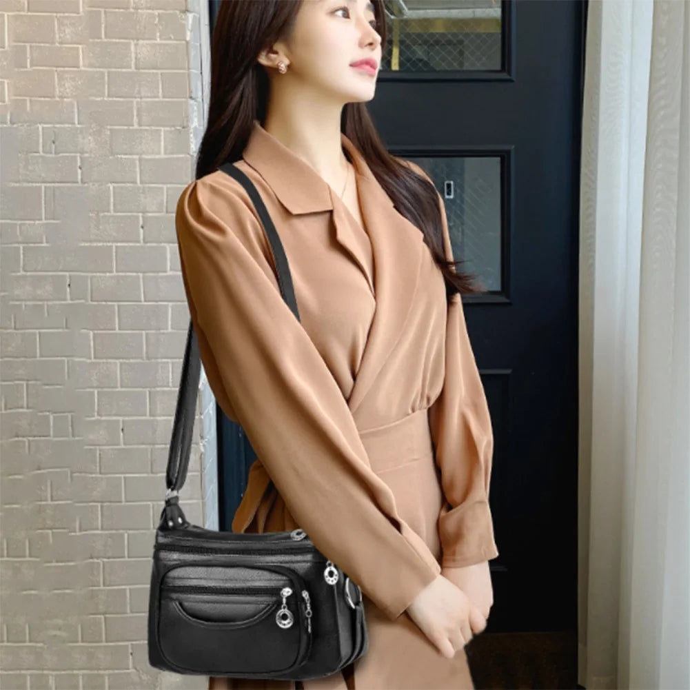 Soft Leather Shoulder Crossbody Bag Classic Solid Zipper Ladies Travel Satchel