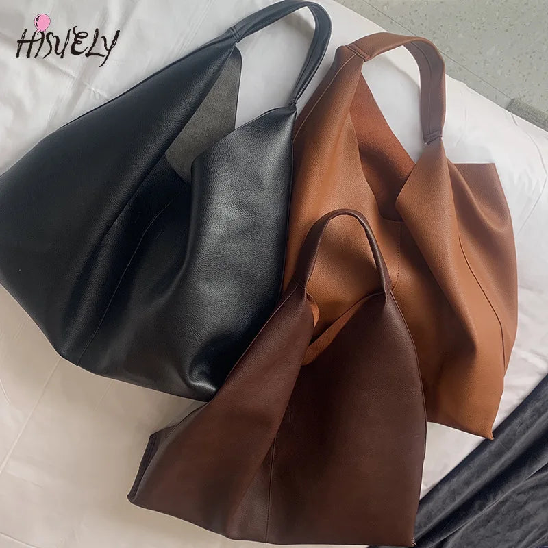 Soft Leather Tote Bag Large Capacity Shoulder Bag Lady Bag Minimalist Casual