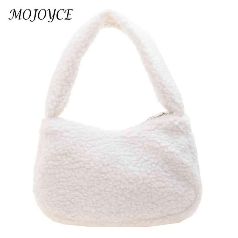 Soft Wool Underarm Bags Winter Tote Casual Portable Warm Zipper Solid