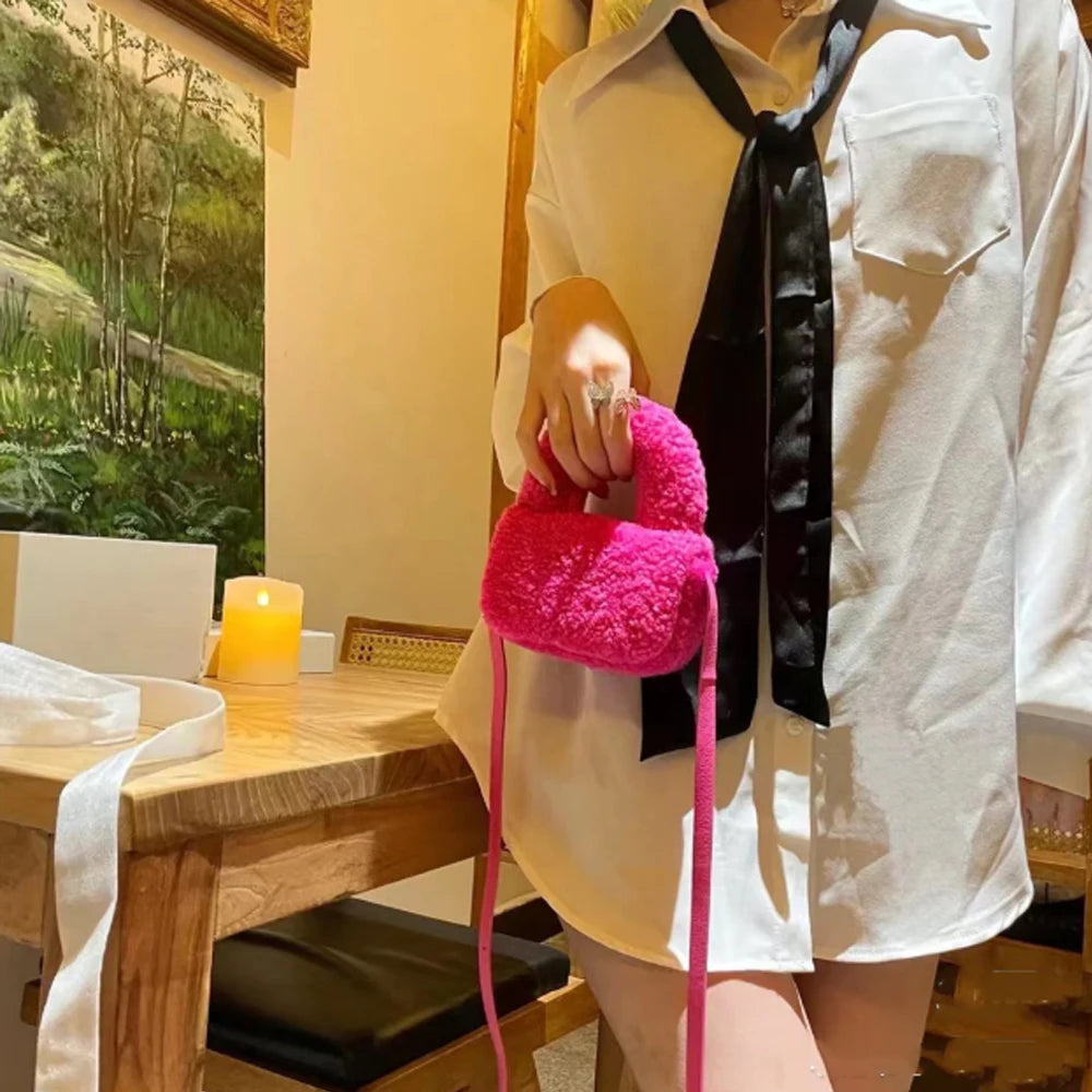 Solid Faux Wool Mini Shoulder Messenger Bag Waist Pack Lady Purse