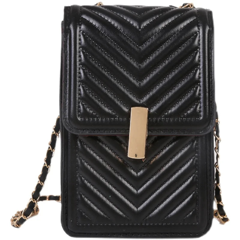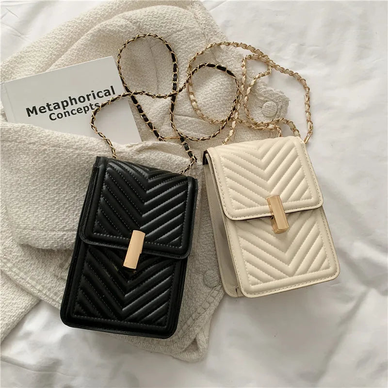 This stylish phone pouch bag is made of high-quality PU leather, perfect for carrying your phone and essentials. The bag features a chain strap for easy carrying and a square shape for a trendy look.