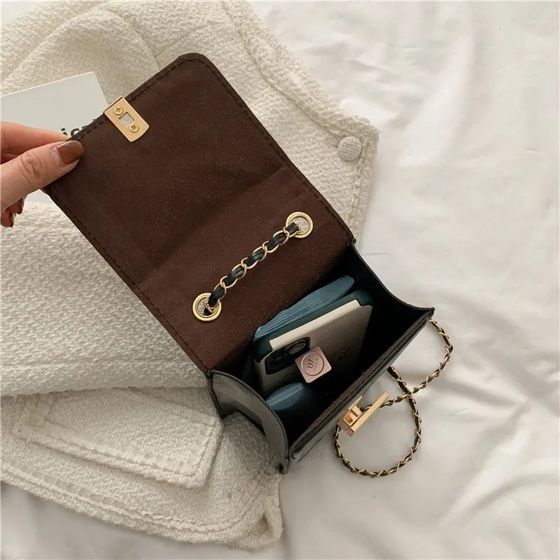 Square Phone Bag with Chain Mini Messenger Bag PU Leather Phone Pouch