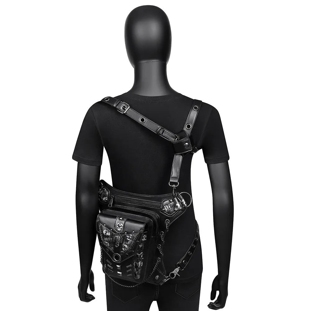 This steampunk-inspired chain bag is a stylish accessory for both men and women. It can be worn as a shoulder bag, messenger bag, waist bag, fanny pack, or purse, offering versatile carrying options.