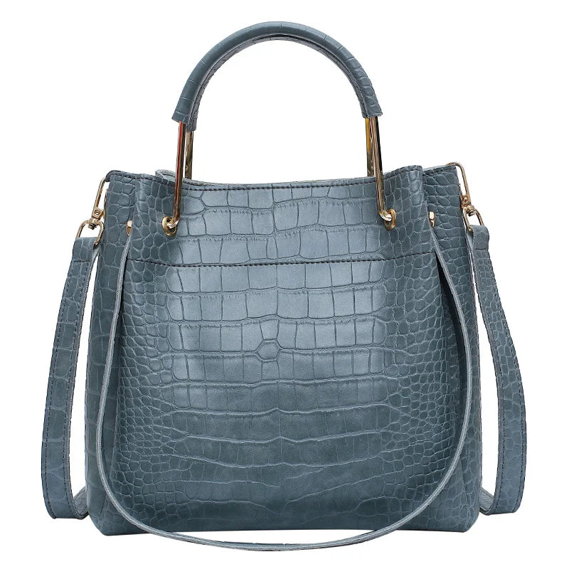 This stylish bucket bag features a stone pattern design and is made of high-quality PU leather.