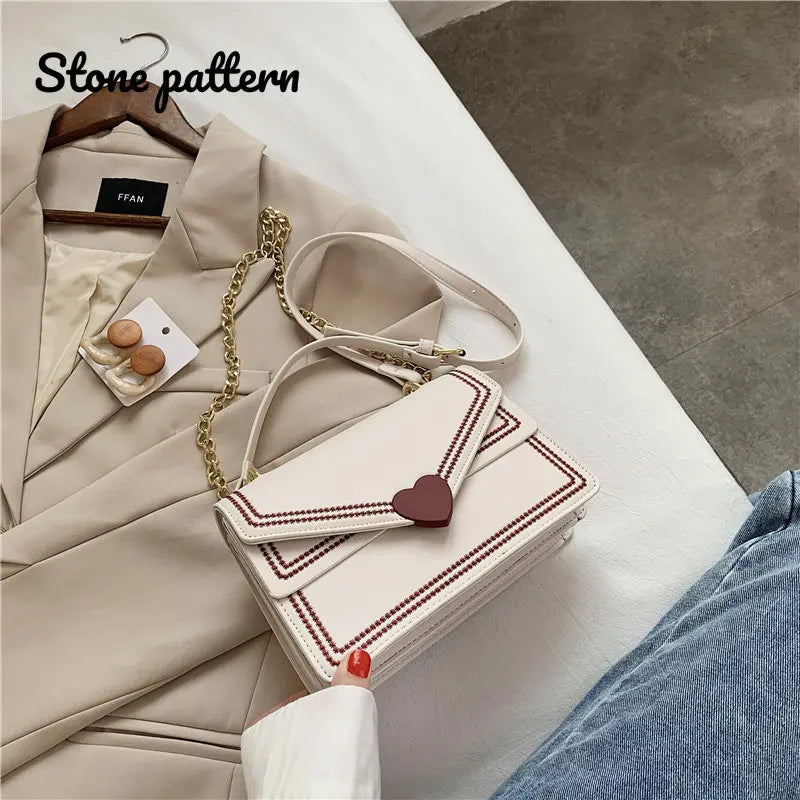 This stylish shoulder bag is perfect for the autumn and winter seasons. It features a stone pattern design and a chain strap, making it a versatile accessory for any outfit.