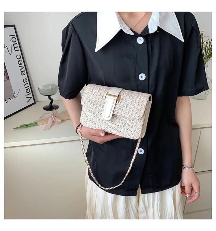 Description:This woven straw shoulder bag is perfect for everyday use, travel or shopping. It features a casual design with a chain strap, making it easy to carry around.Features: Ideal for everyday use, travel, or shopping Made of high-quality woven straw material Features a chain strap for easy carrying Small square...