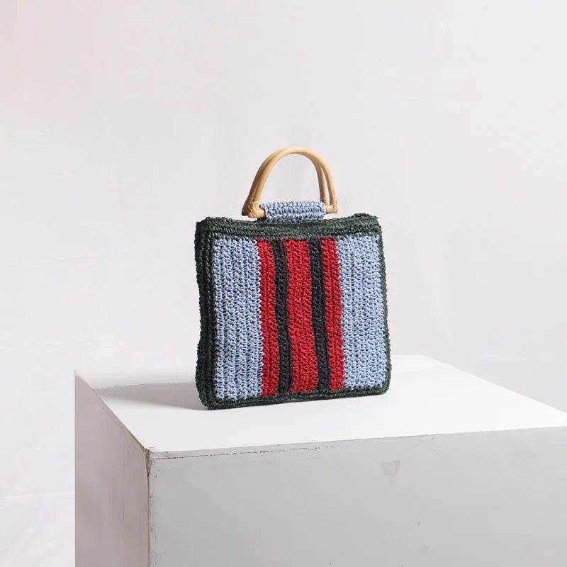 Straw Woven Bag Female Ins Portable Lovely Fairy Stripe Hand Bag