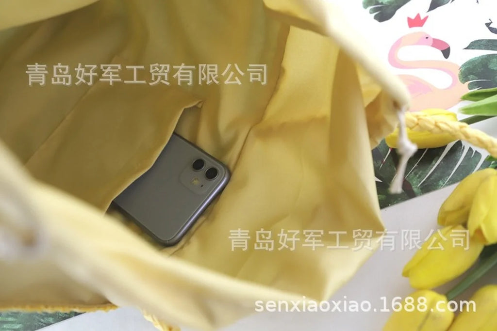 - Handwoven straw material for durability and eco-friendly style
