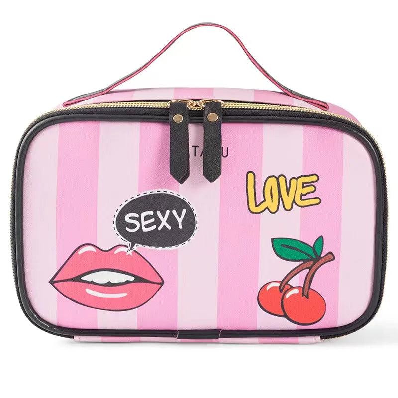 Stripe Love Printing Storage Bag PU Portable Cosmetic Bag Large Capacity