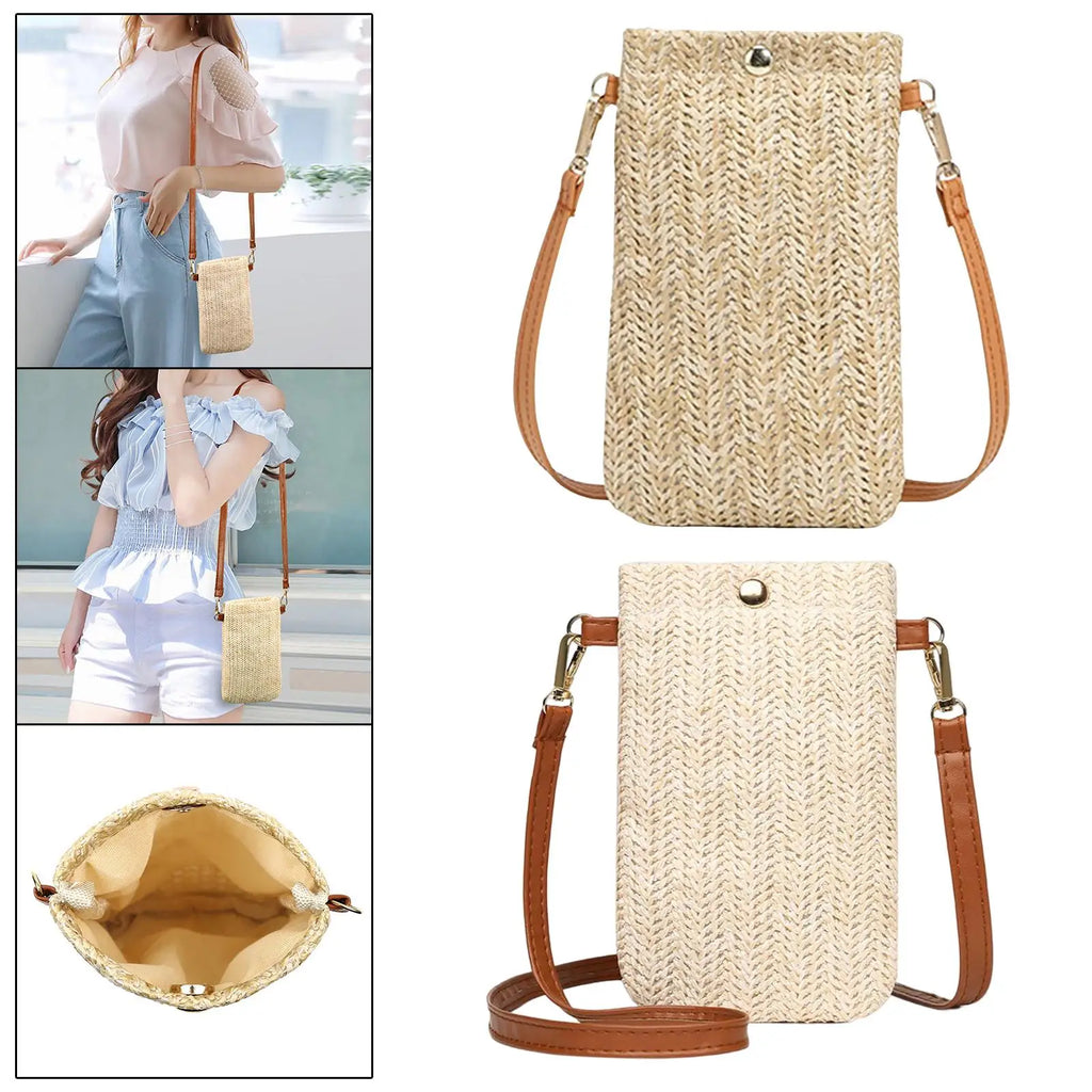 Summer Beach Rattan Shoulder Bag with Adjustable Strap