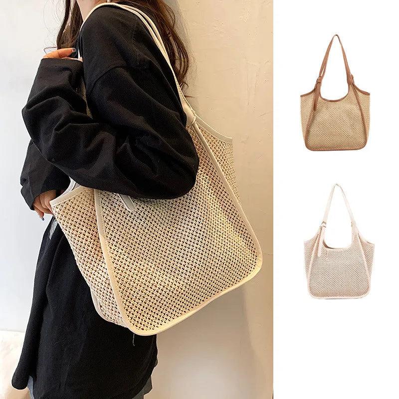 Summer Beige Large Tote Bag - Casual Polyester Jute