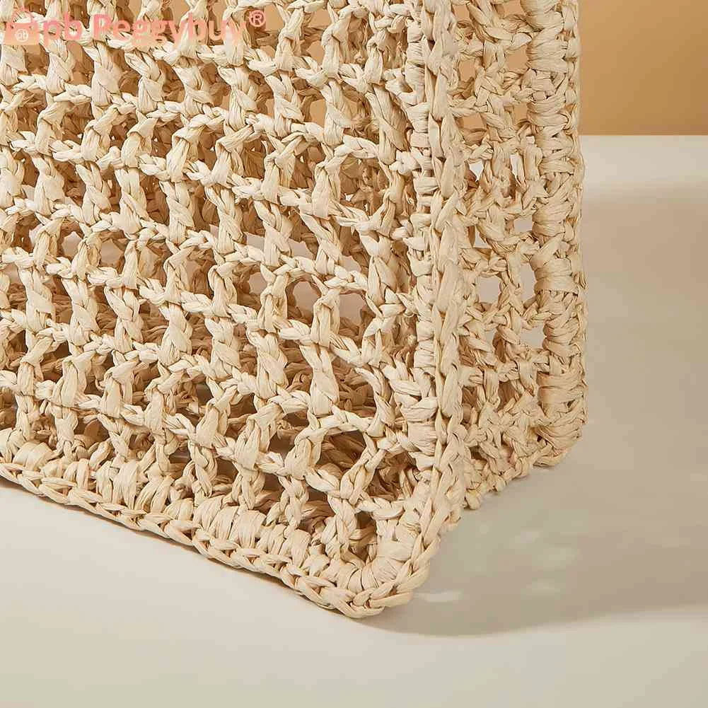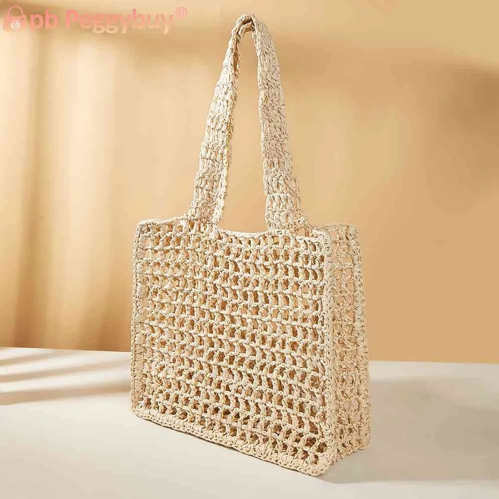 Stay stylish at the seaside with this woven tote bag featuring a hollow design. Perfect for summer holidays and casual outings.