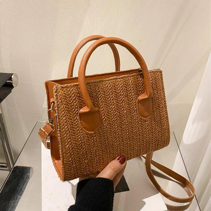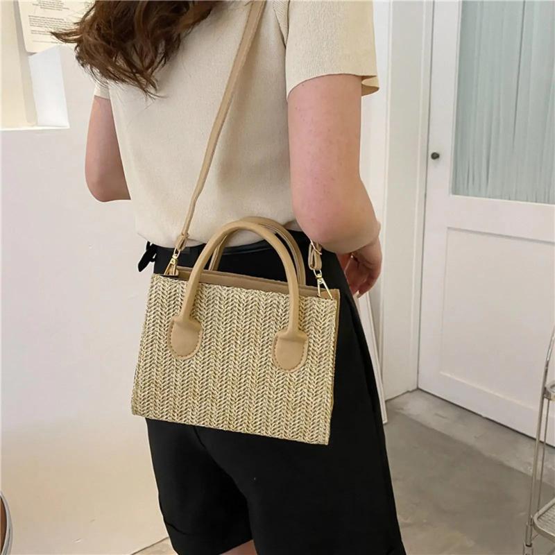 This summer shoulder bag is perfect for leisure, shopping, and travel. Made of straw with a spacious design to carry all your essentials.