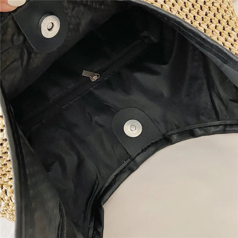 Get ready for vacation style with this beautiful woven shoulder bag, perfect for summer outings. Made from high-quality straw material.