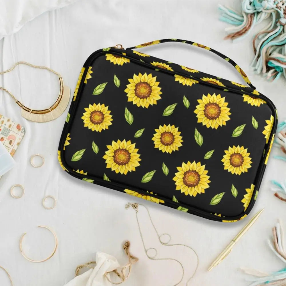 Sunflower Print Jewelry Box Travel Cosmetics Organizer