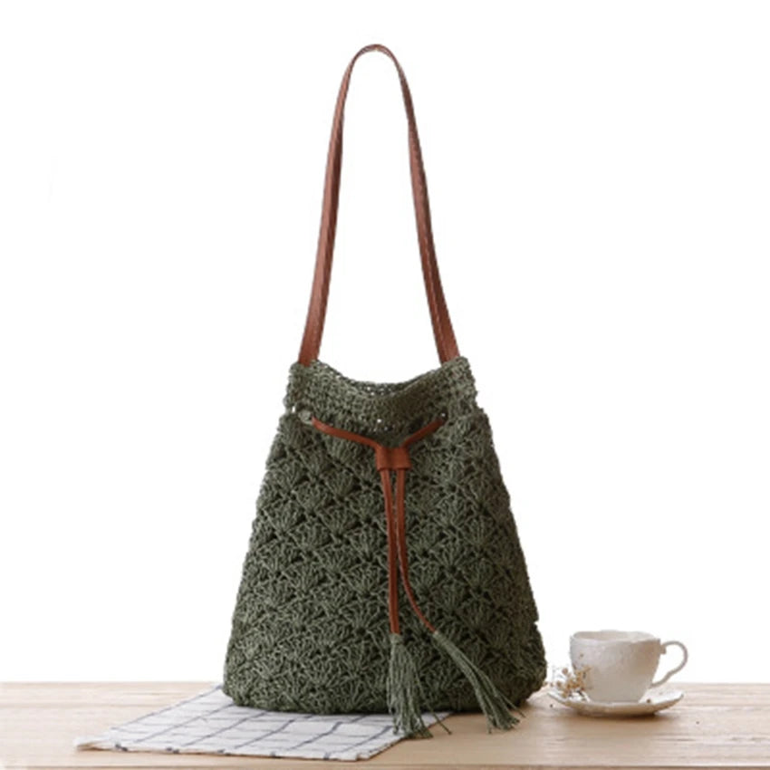 Tassel Bucket Straw Bag Small Fresh Woven Shoulder Beach Bag