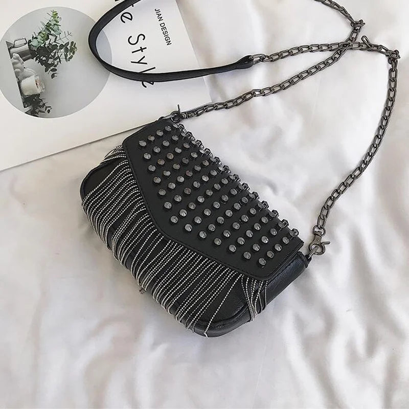 Tassel Diamonds Mini Chain Shoulder Bag Crossbody Leather Rivets Female