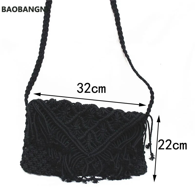 Tassel Straw Beach Bag Large Clamshell Hand-Woven Cotton Messenger Bag