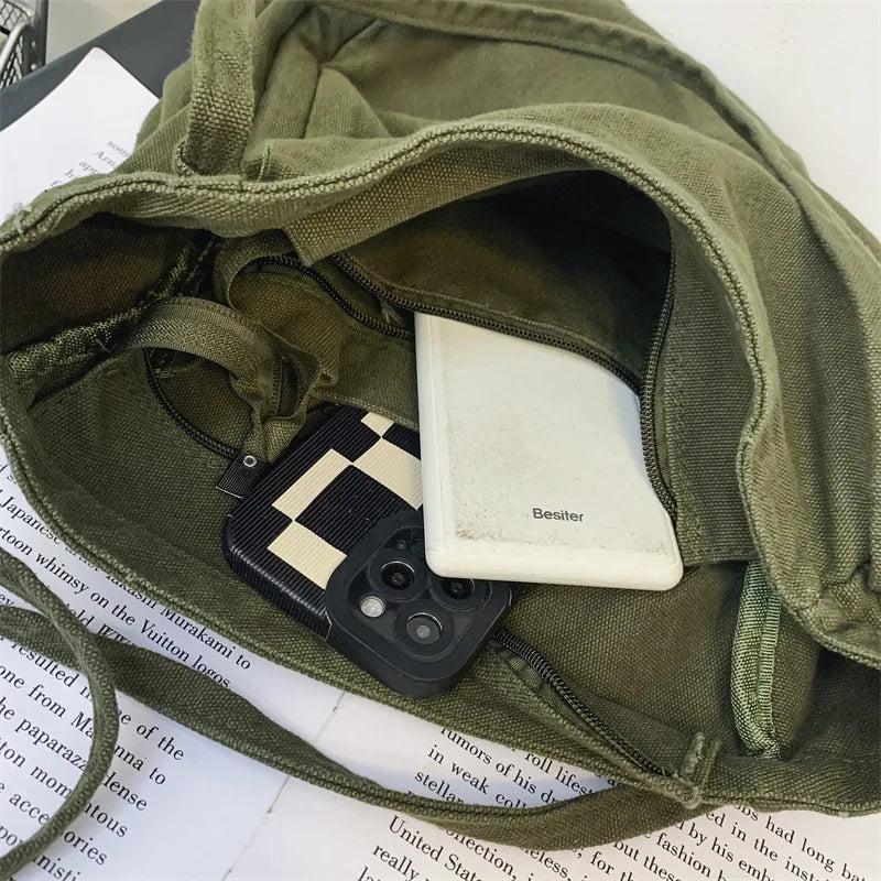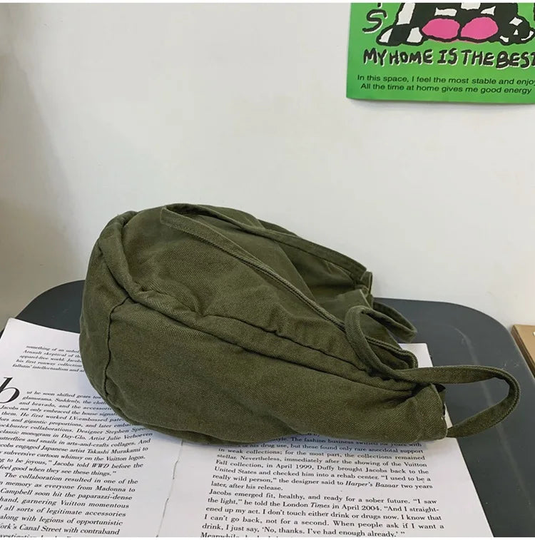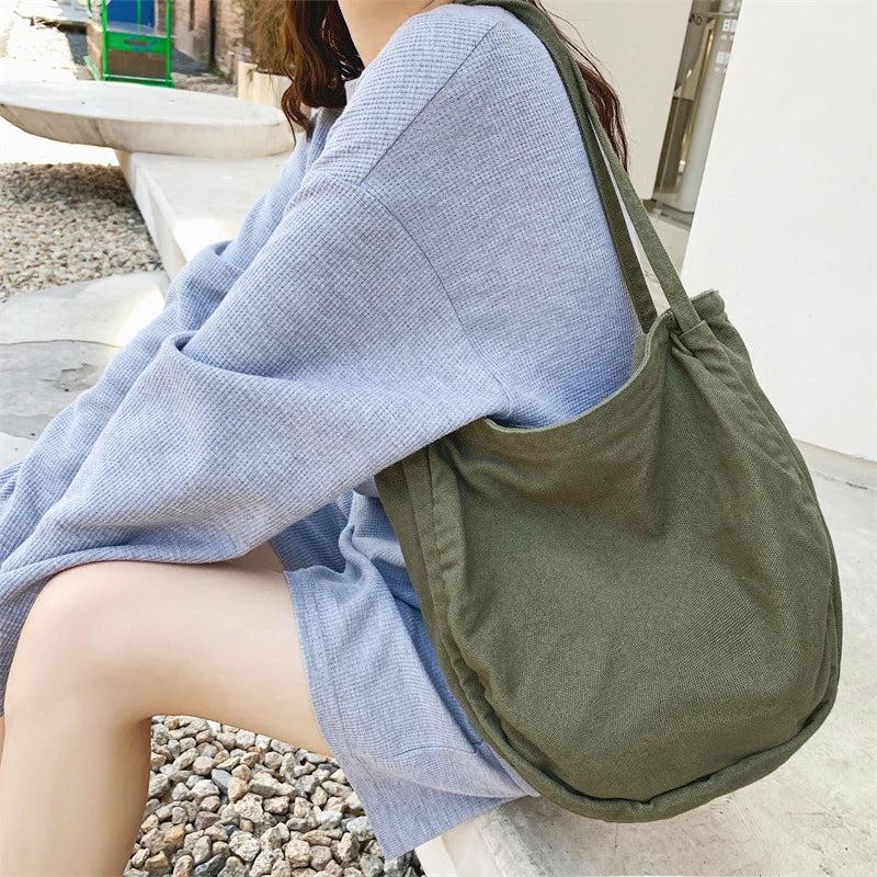 Teen Medium Canvas Hobo Bag Y2K Korea Ins Minimalist Fabric Underarm Pouch
