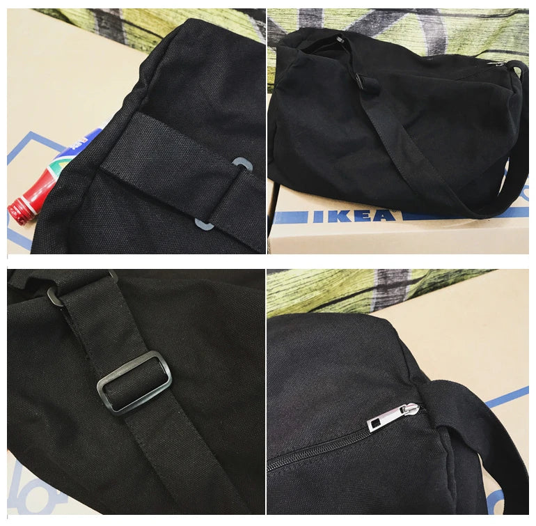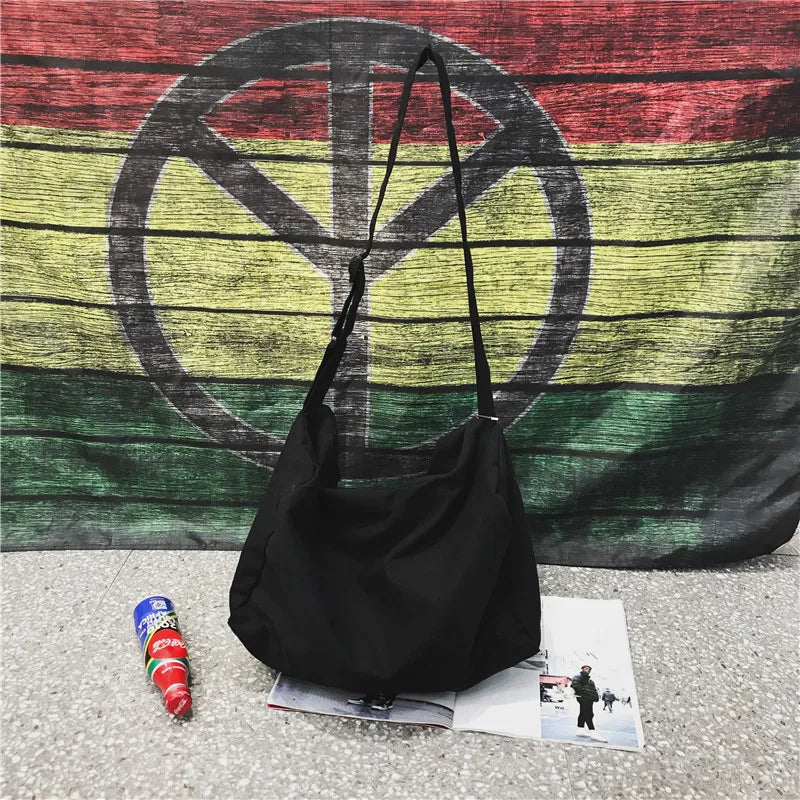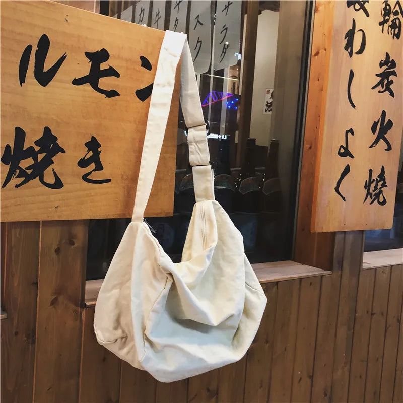 Teenager Ecology Cotton Fabric Side Sling Slouch Bag Youth School Shoulder Bag
