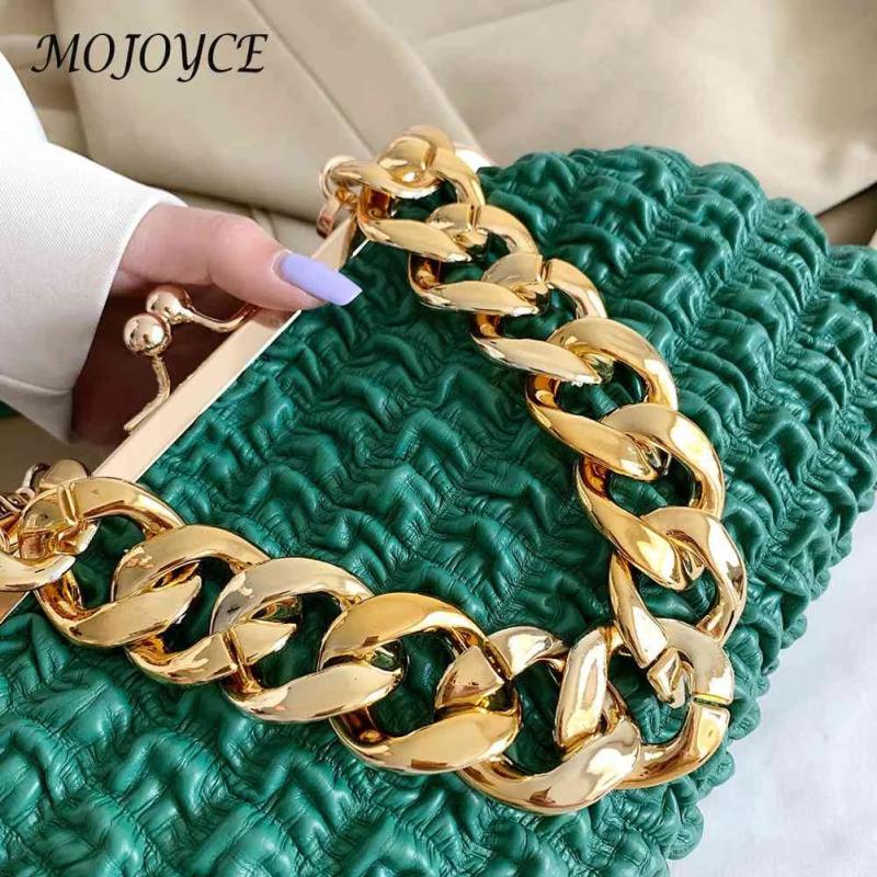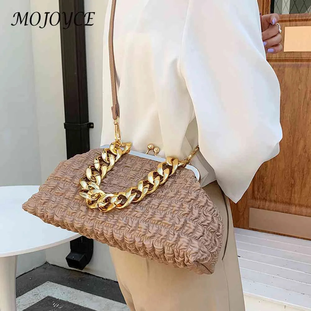 Thick Chain Clutch Bag Plaid Underarm Bag Casual Soft Hasp for Evening Banquet
