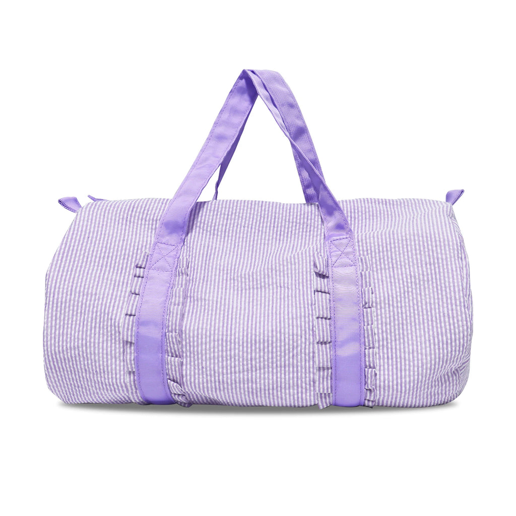 Description:This adorable seersucker ruffle duffle bag is perfect for your little one to use for traveling, school, or vacation. It is lightweight and easy to carry, making it ideal for toddlers.Features: Purple seersucker ruffle duffle bag for toddlers Soft and lightweight design for preschoolers Ideal for school, traveling, or vacation...