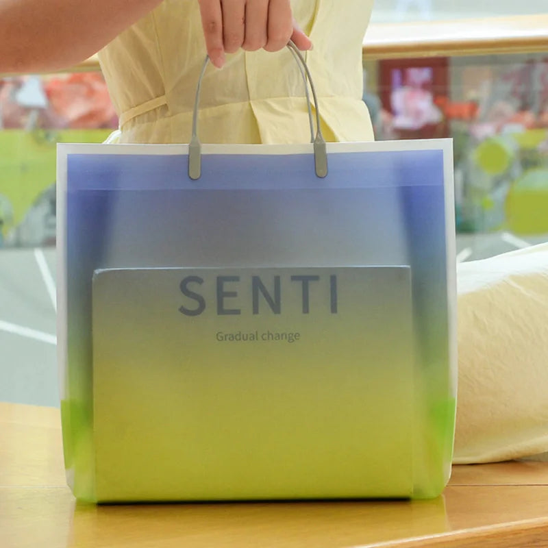 Transparent Frosted Plastic Tote Hanbag Shopper Reusable Shopping Bag