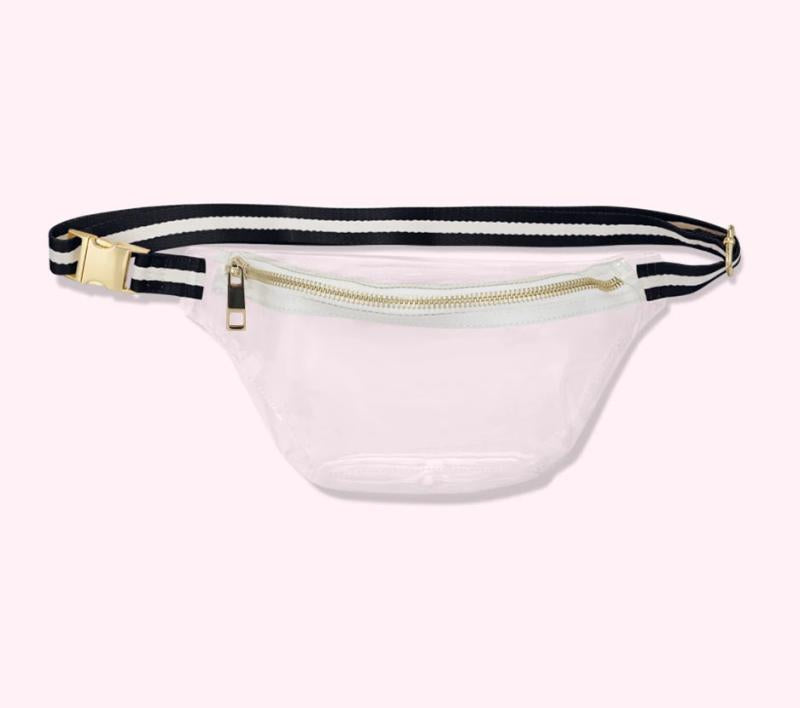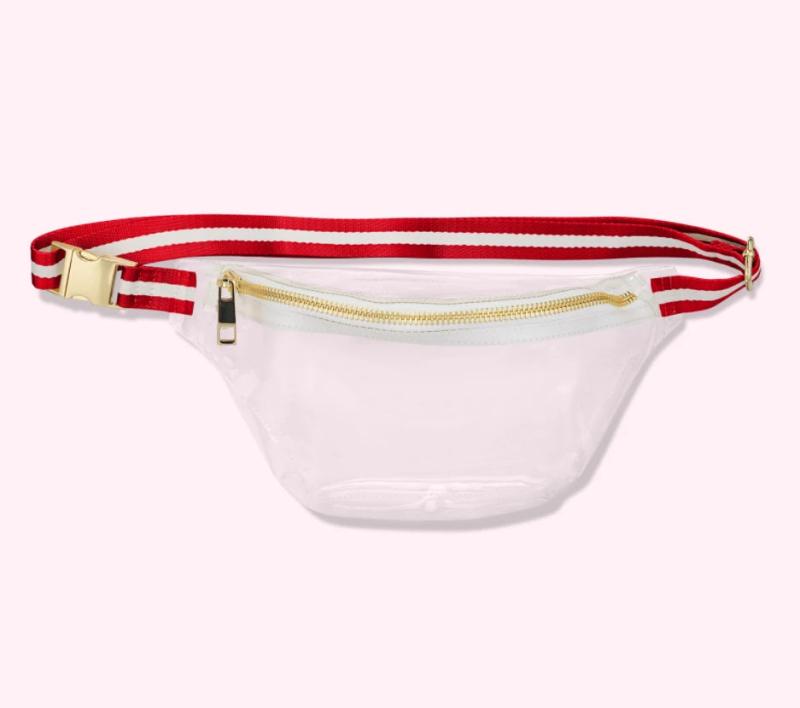 This transparent fanny pack is made of PVC material, providing a large capacity for your essentials while keeping them visible. It is waterproof and ideal for sports activities.