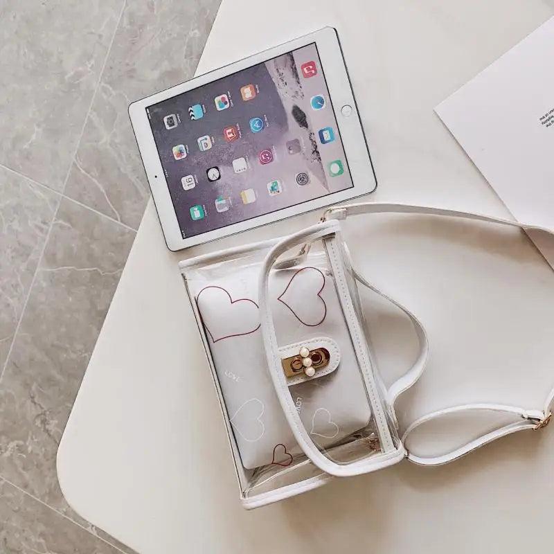 Transparent Pvc Messenger Bag Heart Print Jelly Lock Bag