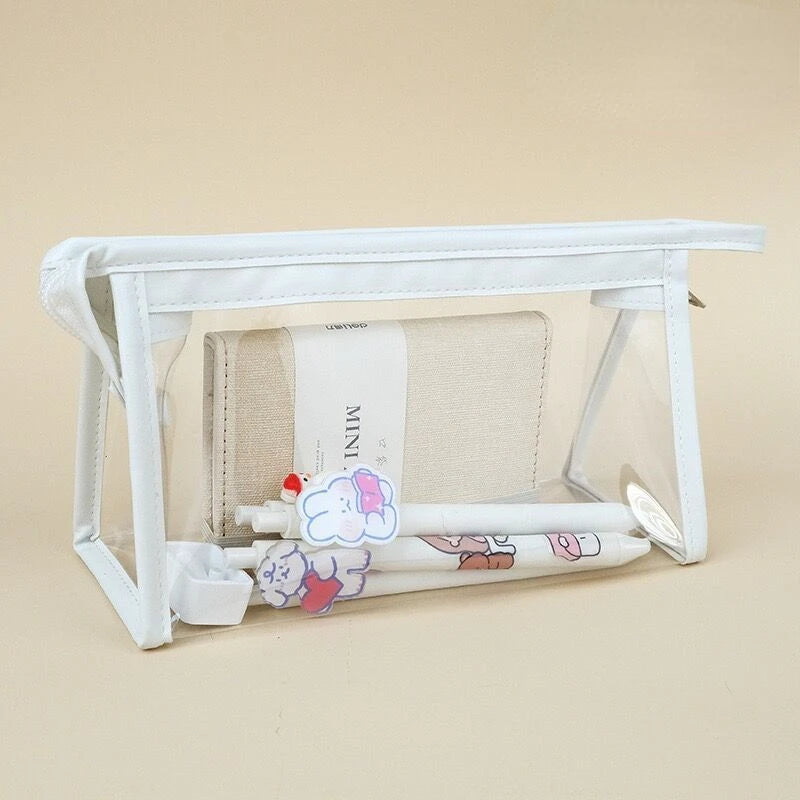 This transparent waterproof cosmetic bag is made of PVC and features a large capacity for all your cosmetics. It's portable and perfect for travel or daily use. The small size makes it convenient to carry around.