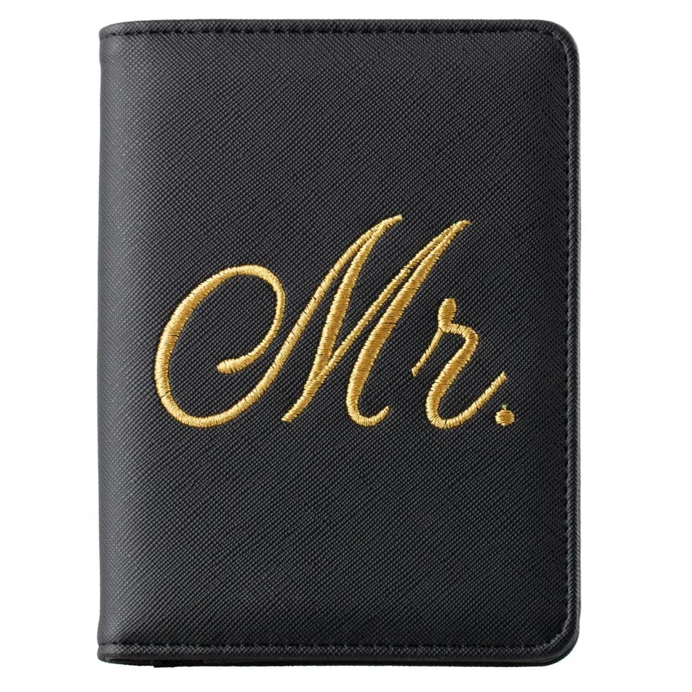 Keep your passports safe and stylish with this embroidered RFID passport holder featuring 'Mr' and 'Mrs'. Perfect gift for wedding couples who love to travel.