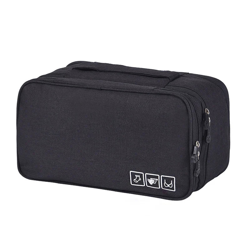 Keep your undergarments and lingerie neatly organized while traveling with this multi-layer divider bag. The dampproof material ensures your items stay fresh. Save space and easily pack your essentials with this portable organizer.