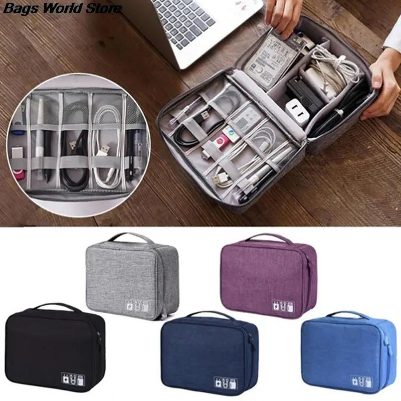 Keep your electronics accessories organized while traveling with this universal cable organizer case. It features an adjustable divide system to customize storage compartments.