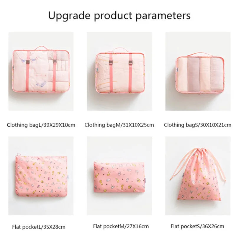 This set of travel organizers includes waterproof mesh bags that keep your clothes organized and protected in your luggage. The set comes with multiple sizes for different items and a convenient pouch for storage.