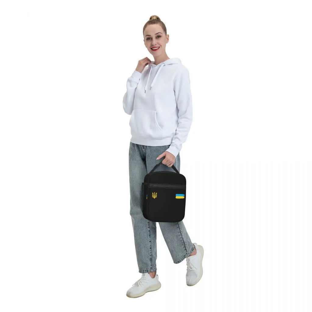 Keep your food fresh and cool with this Ukrainian Flag Stripe Thermal Insulated Lunch Bag featuring the Coat of Arms of Ukraine design. Perfect for school, work, or picnics.