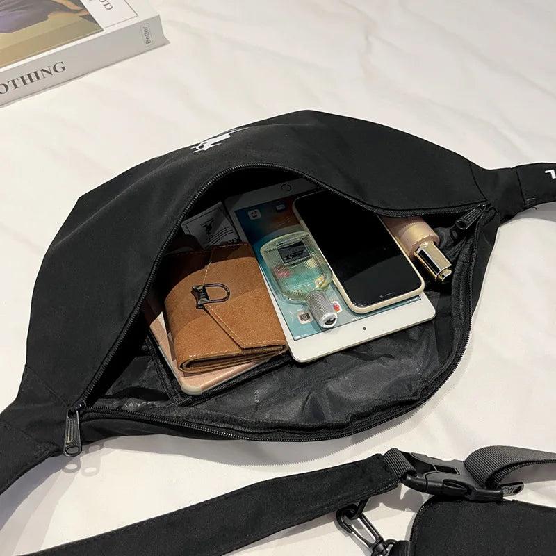 This canvas waist bag is perfect for outdoor sports, travel, and casual use. It can be worn as a chest pack or crossbody bag, suitable for both men and women.