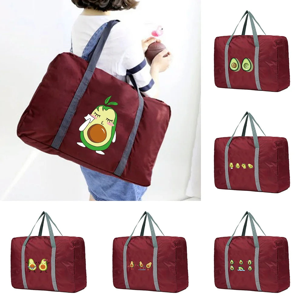 This large capacity portable luggage bag features a stylish avocado pattern, perfect for travel and everyday use.