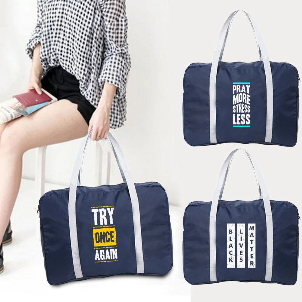 Unisex Foldable Duffle Bag Large Capacity Portable Phrase Printed Luggage Bag