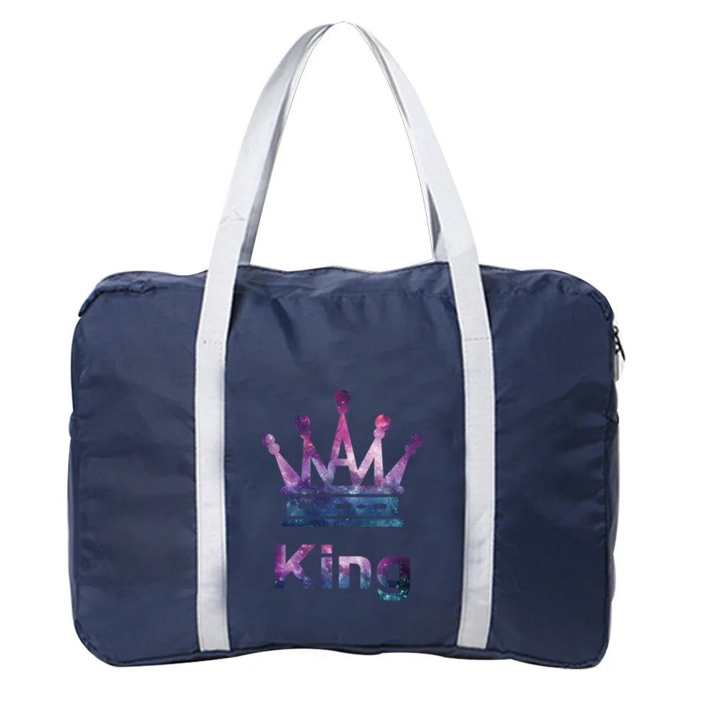 This travel bag is a convenient organizer with a printed design that is perfect for couples. It is foldable and has a large capacity for all your packing needs. Ideal for travel and everyday use.