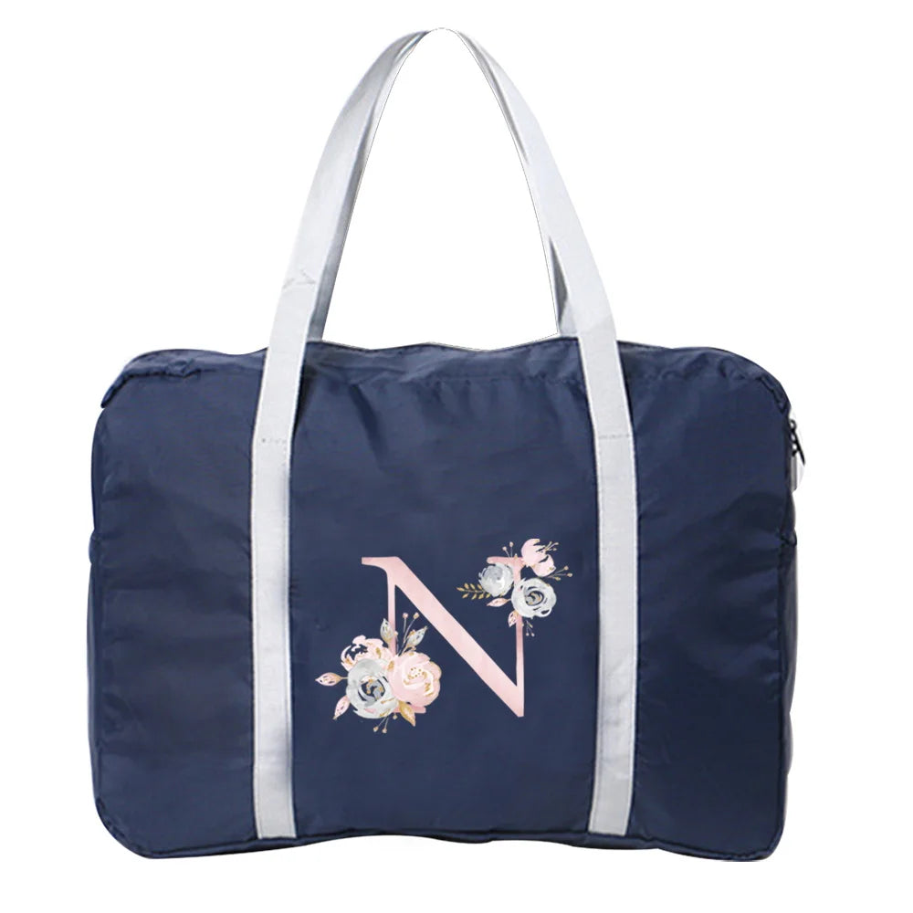 Unisex Foldable Duffle Bag Organizer Pink Flower Letter