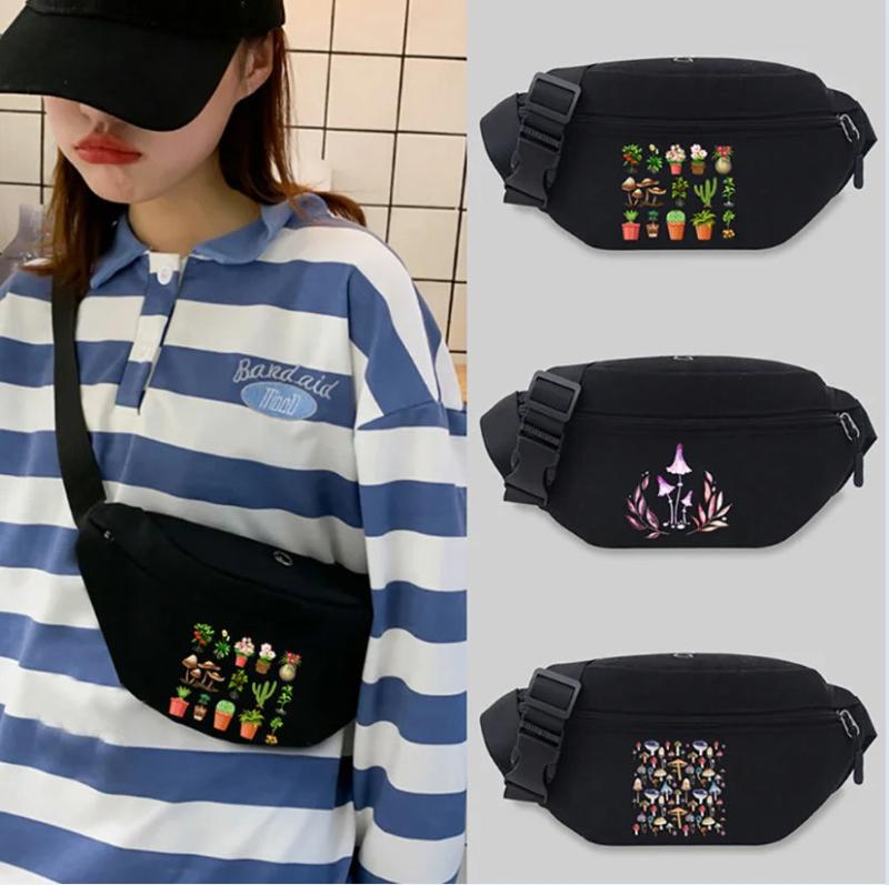 Stay stylish and hands-free with this waist bag featuring a fun mushroom pattern. Perfect for students, leisure activities, and sports.