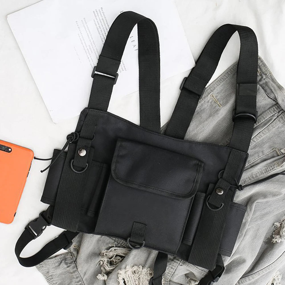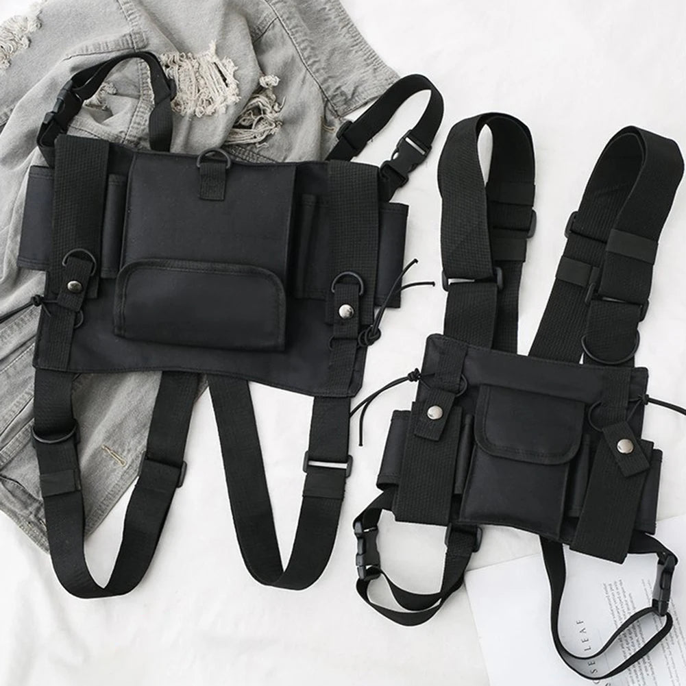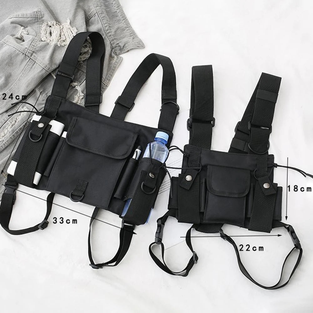 Unisex Outdoor Adjustable Vest Chest Hanging Bag Double Shoulder Waist Pouch