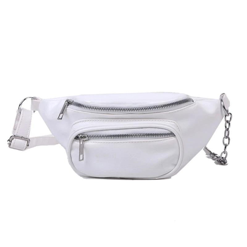 Unisex PU Leather Sling Bag Chain Chest Pouch Waist Pack