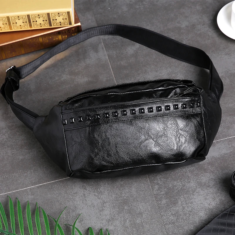 Unisex Waist Bag Fanny Pack Brown Rivet Chest Bag