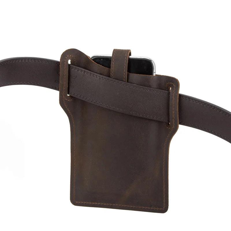 Stay stylish and hands-free with this retro horse leather pouch. Features buttons and a sports phone bag design.