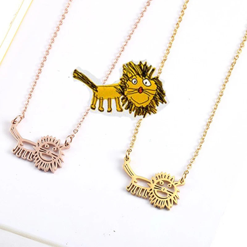 Description:Capture your child's creativity with this personalized stainless steel name necklace featuring their own drawing as a unique gift.Features: Customized with your child's artwork for a special touch Made from high-quality stainless steel for durability Unique and thoughtful gift for parents, grandparents, or friends Perfect way to preserve and showcase...
