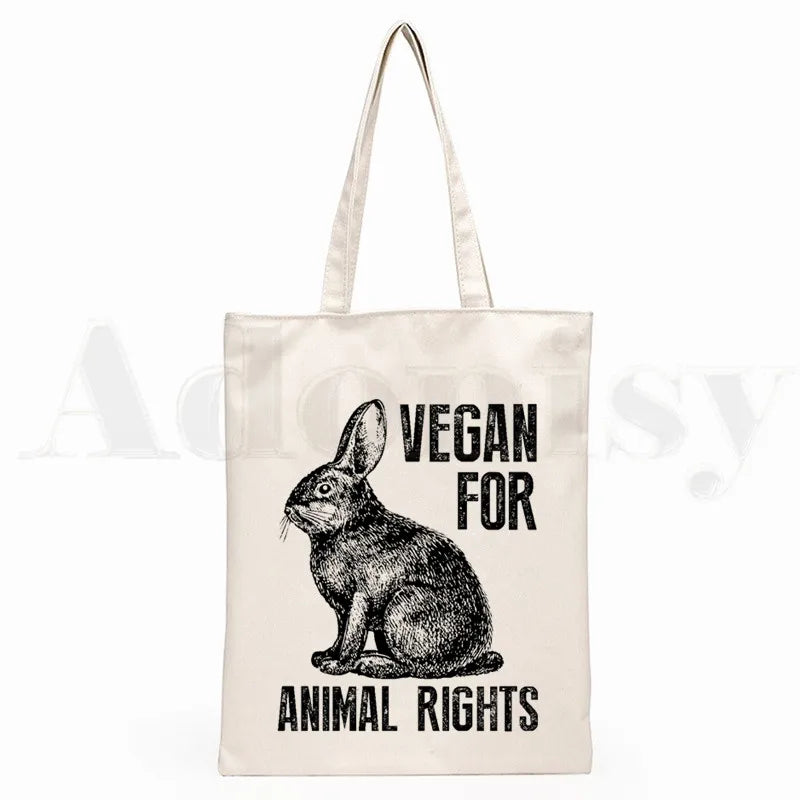 Vegan Cartoon Print Shopping Bags Girls Hand Bag