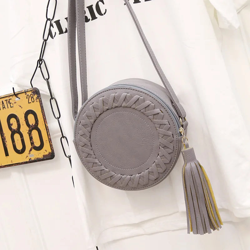Versatile Funny Bag Woman Round Casual Shoulder Bag with Braided Tassel